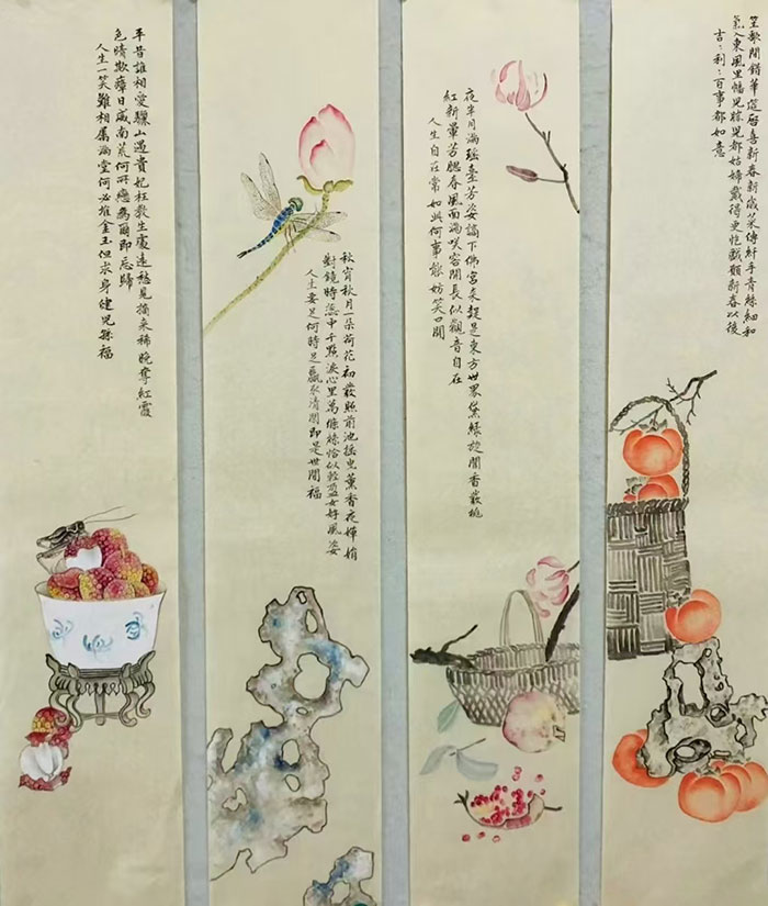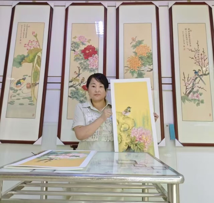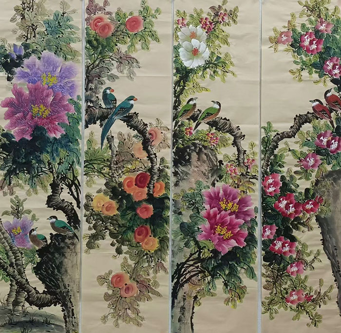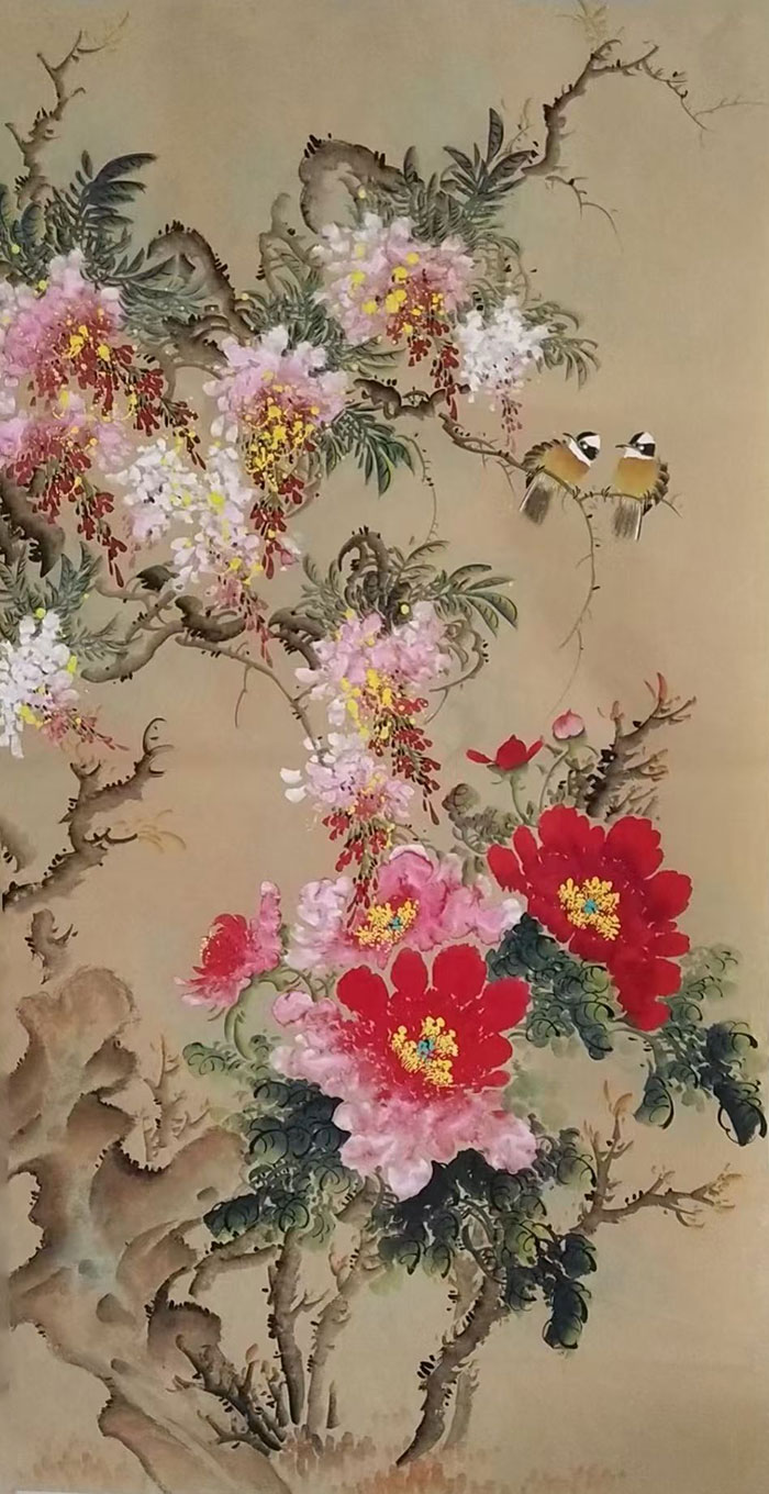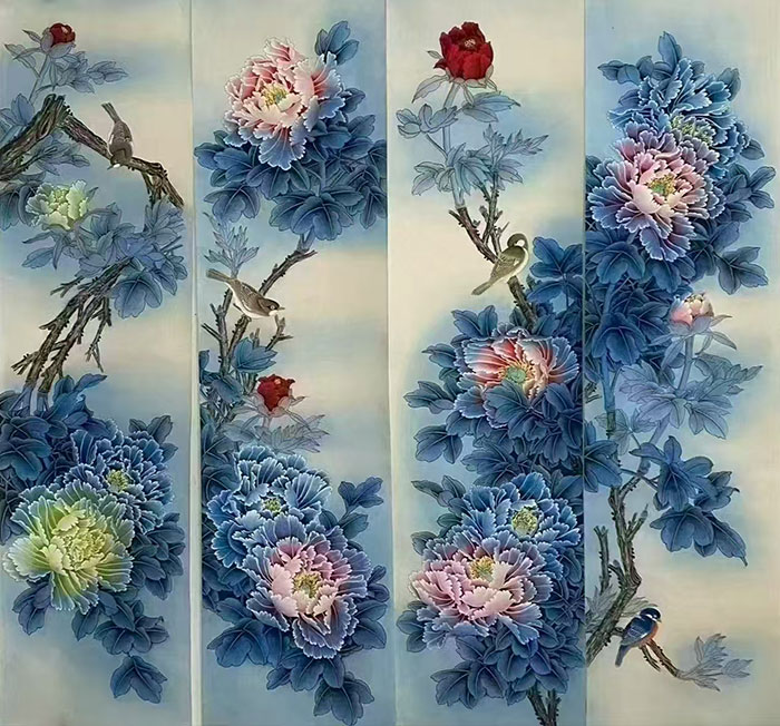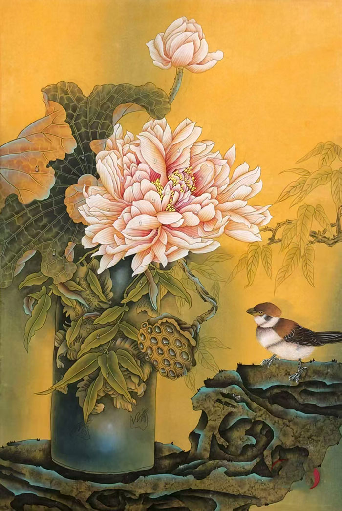 工笔花鸟:以丝毛勾染之法,再现翎羽之轻盈、花蕊之颤动,笔触细腻如诗;