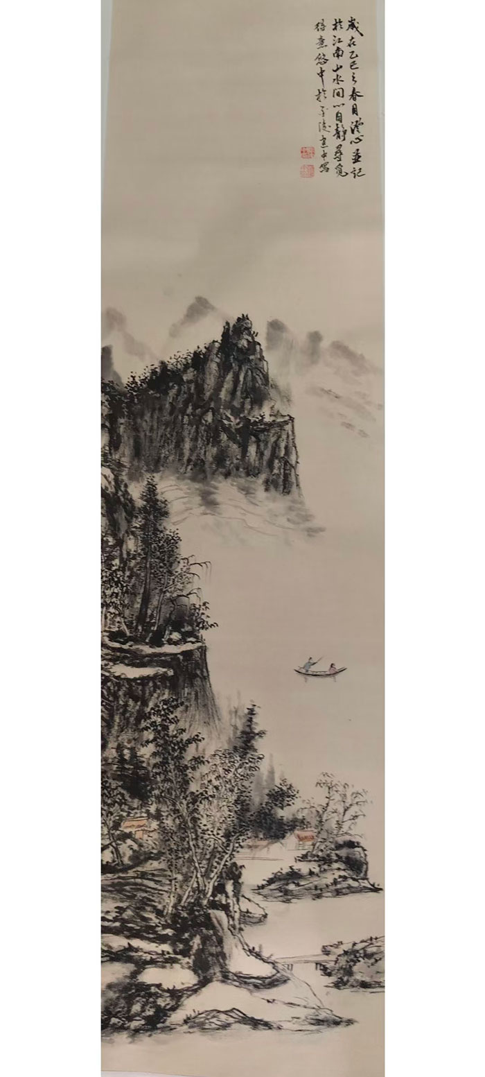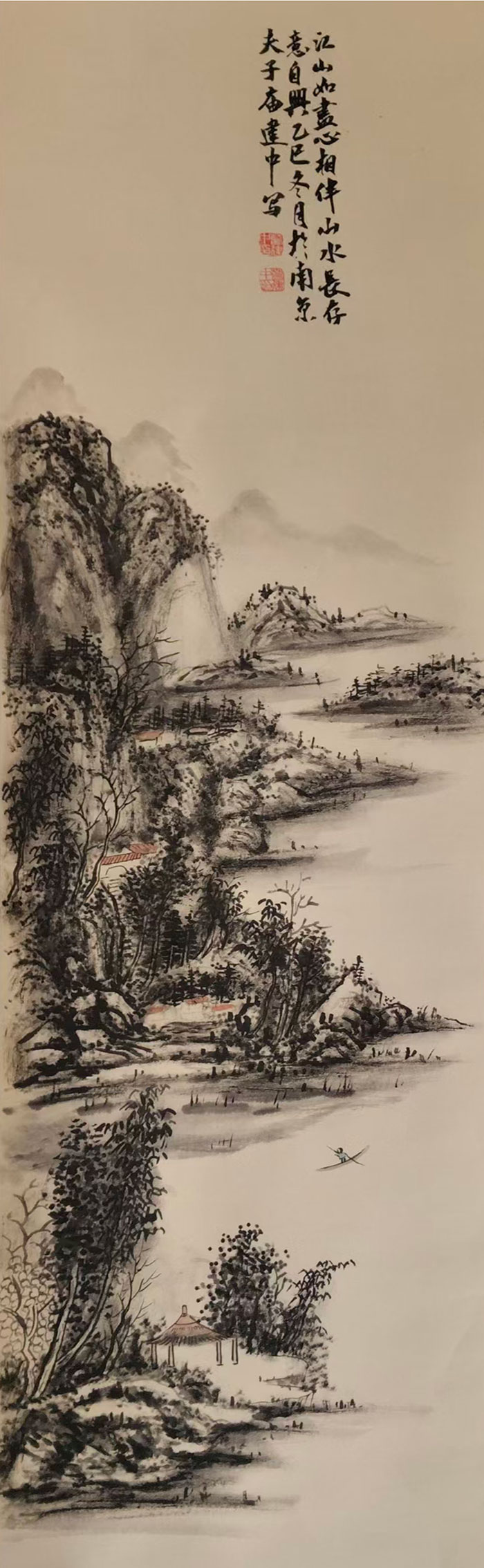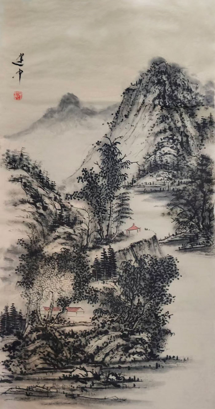 葛建中的山水画以江南水乡为灵魂,通过水墨的晕染与留白,营造出空灵悠远的意境。其代表作《水墨山居图》中,一叶小舟轻泛湖面,远山如黛,云雾缭绕,仿佛将观众带入一个远离尘嚣的桃源世界。这种对江南自然与人文的深情描绘,不仅体现了画家对故乡的眷恋,更传递出一种“天人合一”的东方哲学。