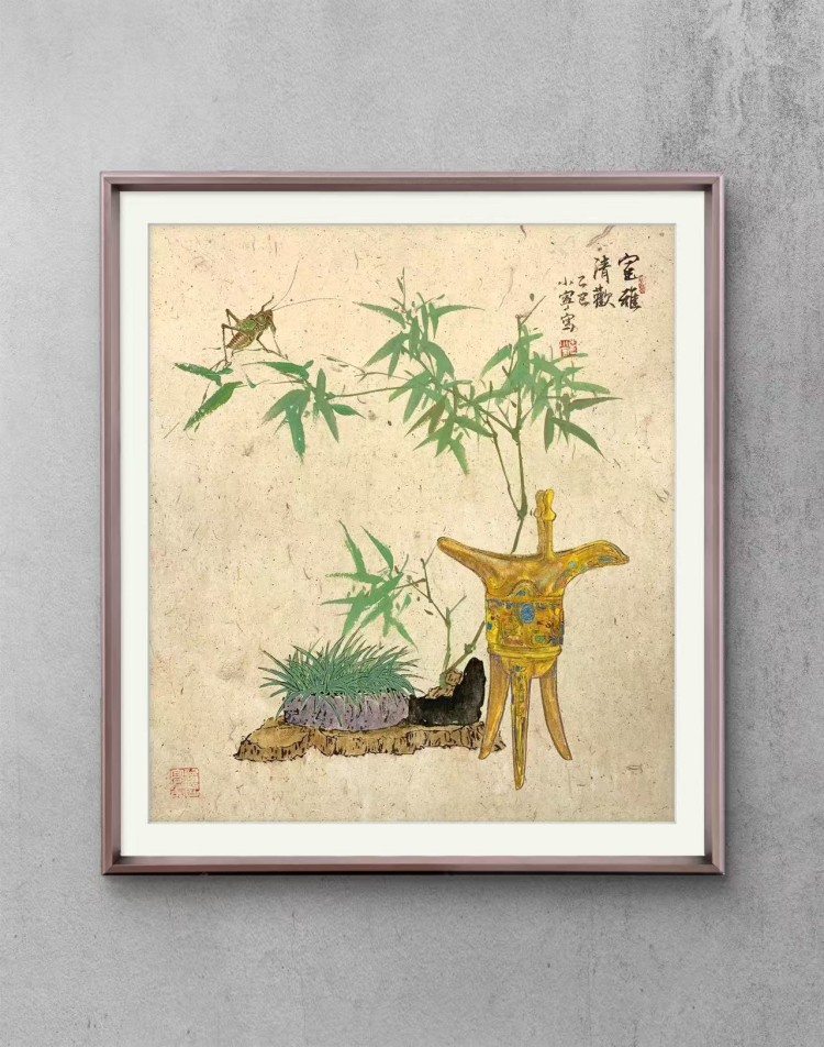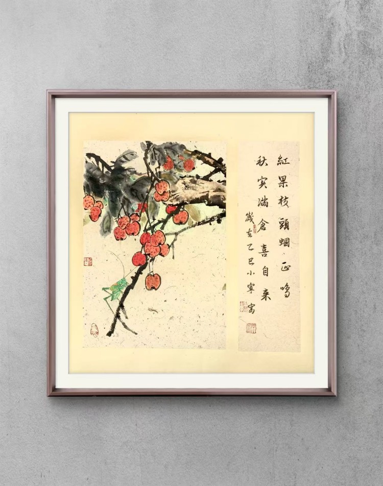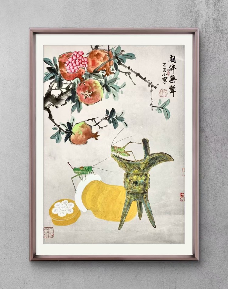 李小宁的艺术之根,深植于中国传统花鸟画的沃土。她潜心揣摩齐白石笔下的天真烂漫、王雪涛墨中的灵巧生机,将前辈大师的精神内化于心。然而,她并未止步于承袭,而是勇敢走向一条充满挑战的创新之路——打破工笔与写意、熟宣与生宣之间的传统界限,开创出独具个人风格的“新水墨工笔草虫”体系。其中,“螳螂捕蝉”系列尤为知名,成为其艺术语言的重要标志。