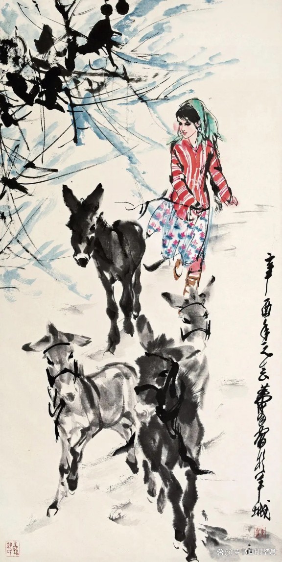 黄胄,人物画传达出强烈的现实生活气息,他作为新中国美术史上一位具有重要影响力的画家,黄胄的作品关注生活,真诚描绘人民的形象,特别是为边疆少数民族留下了壮美的生活画卷。他的少数民族人物与动物具有鲜明的艺术个性和艺术魅力。