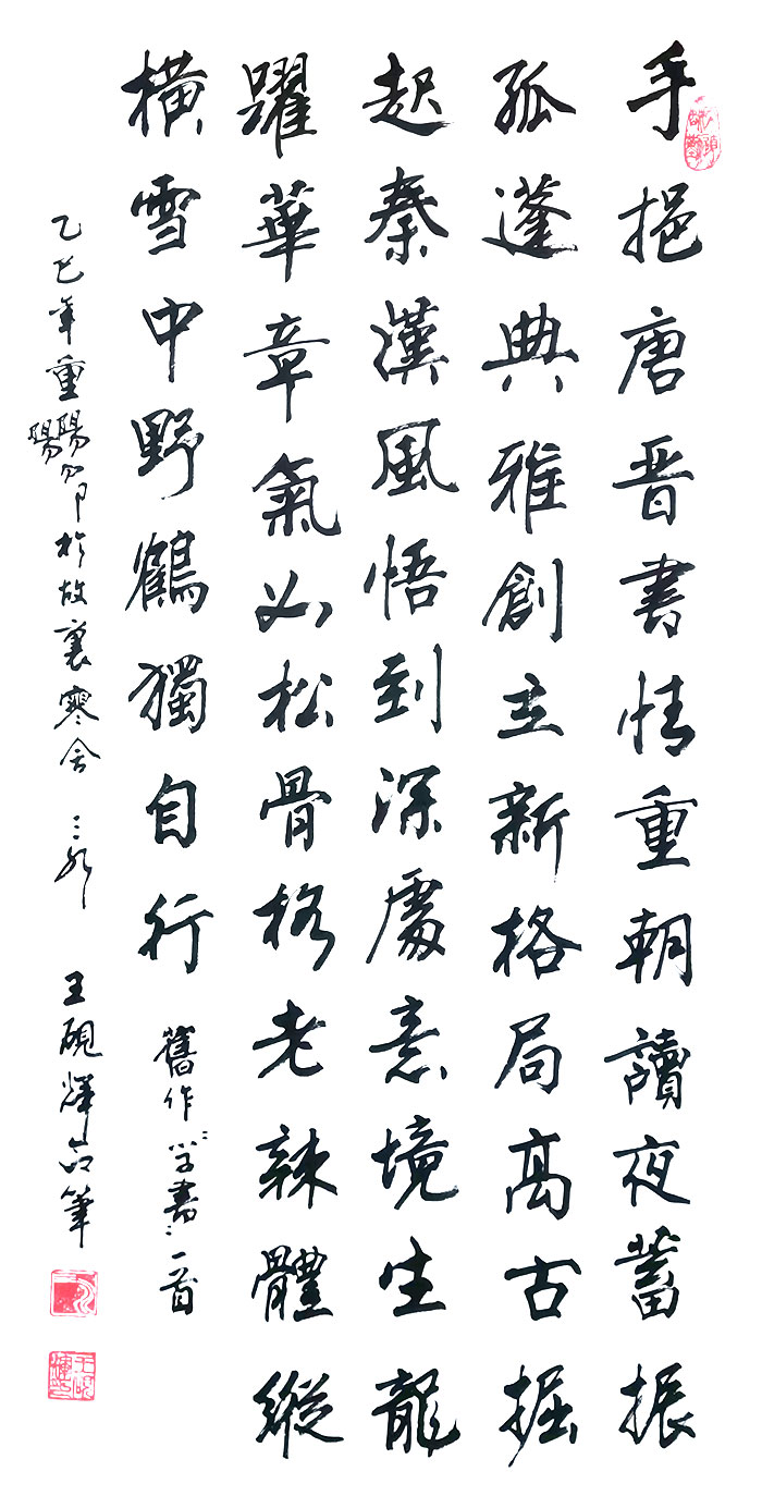 正统书法之价值,首在不可替代的实用之功,其意义远胜单纯收藏、把玩与视觉审美,更能深入生活、滋养心灵、规范言行。书写科学事理,可使人思维缜密、行事严谨,于一笔一画中涵养求真务实之态;书写经典文学,可使人明理启智、胸襟开阔,在笔墨之间汲取先贤智慧;书写诗词歌赋,更能凝练语言、升华情志,使人在平仄韵律与笔墨线条中陶冶气质、振奋精神。此种由实用而生的精神力量,正是书法最朴素亦最深厚的价值所在。